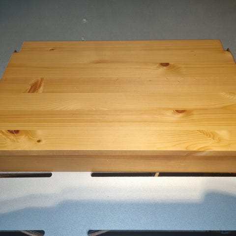 Kuvanmukaiset kolme Lundia hyllytasoa. Koko: 50x30cm, ruskeilla päätylistoilla.