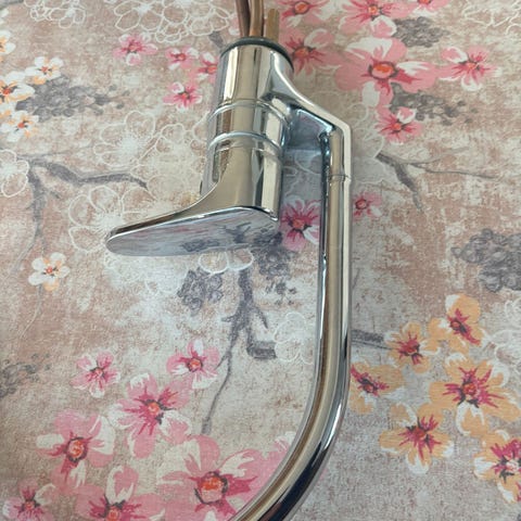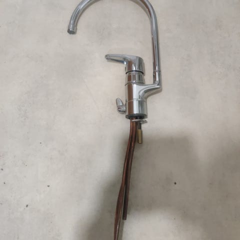 Krominvärinen keittiöhana pesualtaaseen. Yksivipuhana, jossa kaareva juoksuputki. Mukana tulevat liitäntäputket ja asennukseen tarvittavat osat kuvien mukaisesti. Soveltuu tavalliseen keittiön tiskialtaaseen tai kodinhoitohuoneen altaaseen. Irroitettu 4.3.2026 toimivana remontin alta pois. Vm. 2008