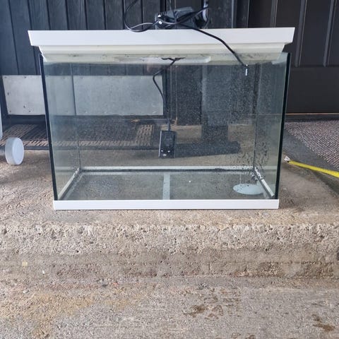 Kulmamallinen akvaario, jossa lasiseinät ja musta kehys. Akvaario on suunniteltu sijoitettavaksi huoneen nurkkaan. Likainen tällä hetkellä, mutta jos joku tämän ostaa enkä joudu viemään kaatopaikalle, voin tehdä sille pikaputsauksen😅. En tiedä kuinka tilava akvaario on mutta mittoja oli: