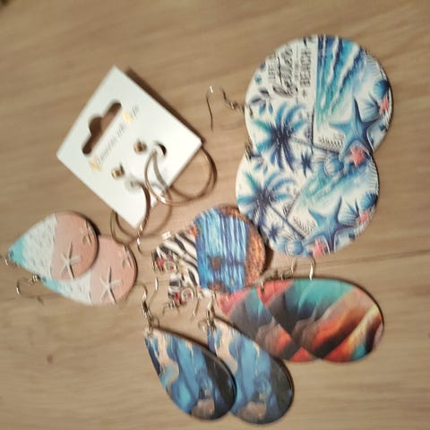 Kuvan mukaiset korvakoruja käyttämättömät. Hinta yhteensä 15e.