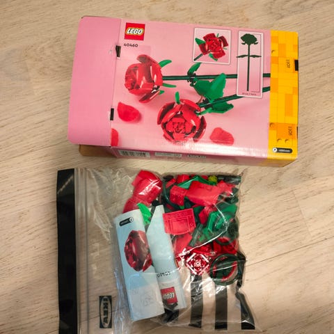 Uusi, täysin avaamaton paketti, LEGO ruusut. Jäänyt ylimääräiseksi ja kokoamatta.