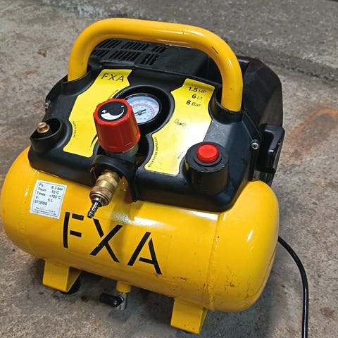 Airtech Euro 3500-1 kompressori. Kannettava mäntäkompressori, jossa vaakasuuntainen paineilmasäiliö ja kaksi painemittaria. Laitteessa on pyörät ja kahva siirtämistä varten. Säiliö on väriltään pinkki. Soveltuu paineilmatyökalujen, renkaiden ja muiden paineilmaa tarvitsevien laitteiden käyttöön ja täyttöön käyttäjän tarpeiden mukaan.