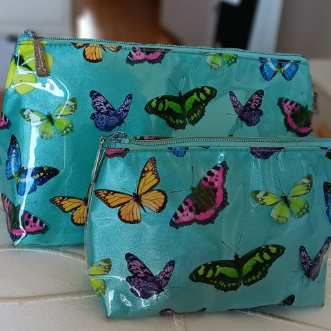 Pyöreä säilytyslaukku rintaproteesille. Laukussa on vetoketjusuljenta kahdella vetimellä ja yläosassa kantokahva. Ulkopuolella on kirjailtu ruusukuvio. Sisäpuoli vaaleaa kangasta, jossa on tasku pienten tavaroiden säilytykseen. Mukana uimapukutarra. Toimitus alkuperäisessä pakkauksessa.