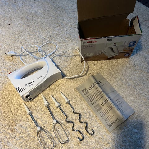 Myydään toimiva ja käyttämätön sähkövatkain. Sen vispilä vatkain puuttuu.