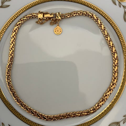 Myydään vintake kaulakoru. Perhonen, musta/ vaal.pun. Ketjussa lukko.