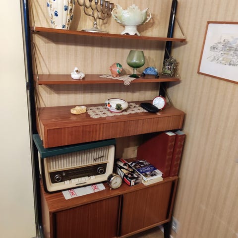 Liukuovi senkki lipasto tv kaappi kirjakaappi retro vintage tiikkinen