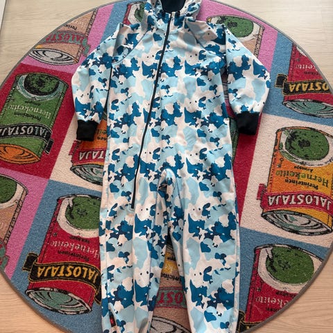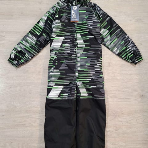 Lasten välikausihaalari on hyvin vähäiselle käytölle jäänyt. Muuta mainittavaa en löydä kuin että yksi tarran vastinkappale puuttuu, samoin toinen jalkarenksu.