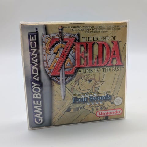 Nintendo The Legend of Zelda: A Link to the Past Four Swords Game Boy Advance -peli. Toimintaseikkailupeli käsikonsolille, jossa yhdistyvät A Link to the Past -seikkailu ja erillinen Four Swords -moninpelitila. Pelilaatikko ja kansitekstit useilla kielillä.