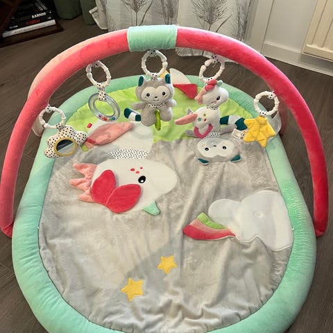 Leikkimatto on pehmeä, jonka ylle kaartuu kaksi pehmustettua lelukaarta. Lelukaarissa riippuu 5 erilaista, irrotettavaa lelua. Jokaisessa leluhahmossa on rapisevia että peilistä osia. Leikkimattoa voidaan käyttää myös ilman lelukaaria, ne on helppo irroittaa sivuista.