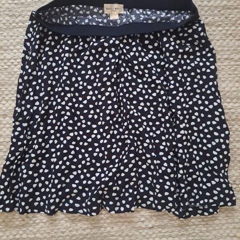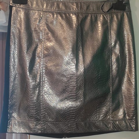 Uusi musta satiinin tyyppinen hame. Kokomerkintä L, menee myös M koossa. Kuminauhavyötärö. Merkistä ei tietoa.