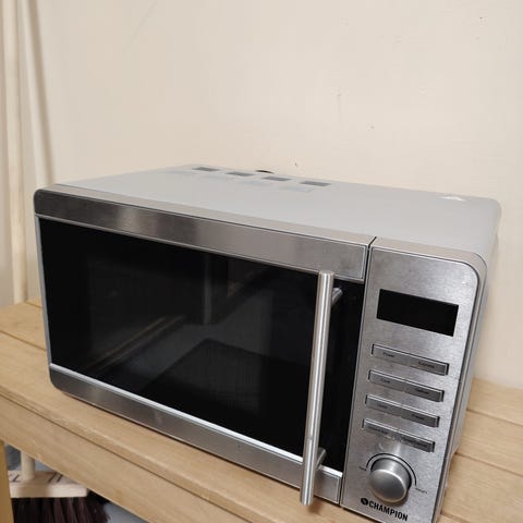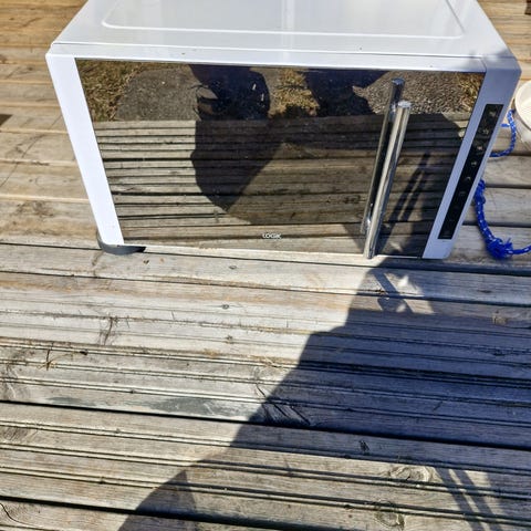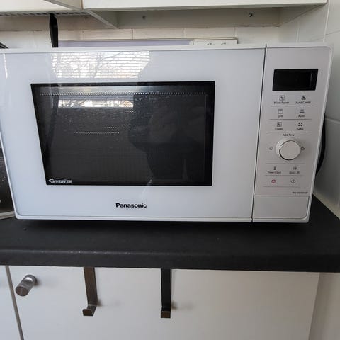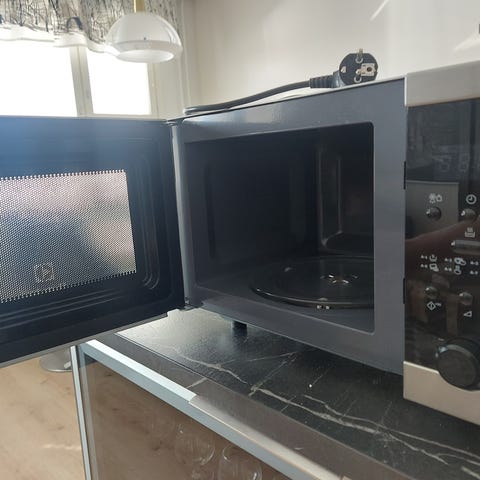 Siemens mikroaaltouuni teräskuorella. Laitteessa on etupaneelissa digitaalinen näyttö, valintarulla sekä painikkeet eri tehotasoille ja toiminnoille. Mikroaaltouuni soveltuu ruoan lämmittämiseen ja sulattamiseen. Vapaasti sijoitettava malli