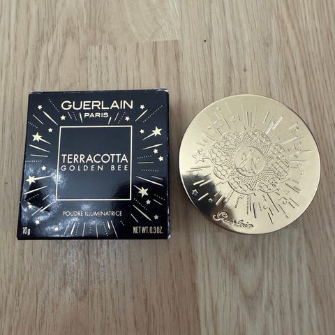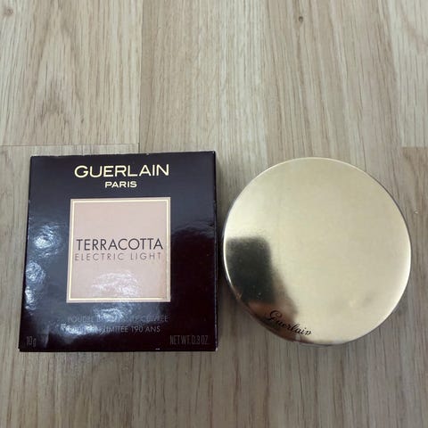 Guerlain Terracotta Sun Tonic aurinkopuuteri sävyssä 03 Natural Brunettes. Vedenkestävä ja pitkäkestoinen puuterimainen bronzerikasvopuuteri, joka on suunniteltu korostamaan luonnollista päivetystä. Tuote on puristemuotoinen ja pakattu pyöreään rasiapakkaukseen. Sisältö 10 g. Sopii erityisesti luonnollista sävyä ja kevyttä päivetystä hakeville bruneteille. Käyttämätön.