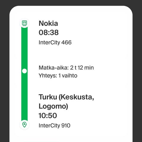VR IC 910 junalippu Tampere–Turku aikuiselle