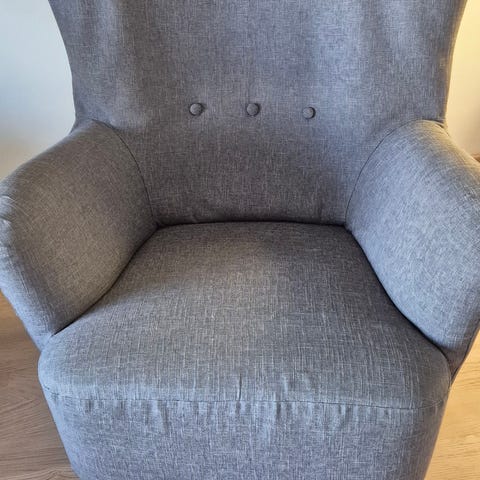Puhtaana pidetty klassinen nojatuoli. Väistyy sohvan tieltä. Pieni repeämä saumassa( katso kuva)Sijaitsee Kauppurienkatu 36.