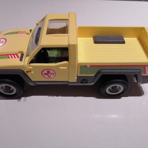 Myynnissä eri ilmoituksella schleich avolava-auto, jolla meillä vedetty vaunua. Eivät kuitenkaan ole varmaan tarkoitettu pariksi, koska vaunun eturenkaat ovat aavistuksen ilmassa eivätkä näin ollen pyöri. Vaunun vetäminen onnistuu kuitenkin loistavasti. Auto myydään erikseen.