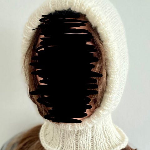 Itseneulomani balaclava huppu. Lanka on DROPSin baby alpakka x merinovilla, joka ei kutita.
