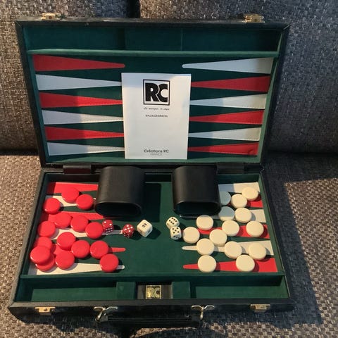 Backgammon-setti salkussa – lähes käyttämätön
