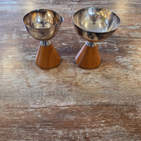 2 kpl Anna-Greta Eker kynttilänjalka 2 kpl hopealeima 813 h ja yhteispaino 293 g keittiövaaalla.