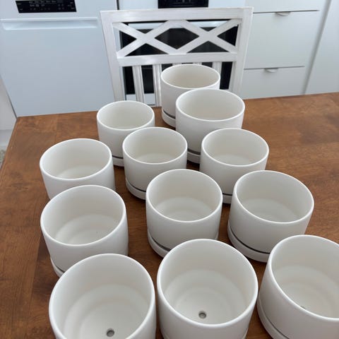 3kpl 60-luvun pientä kukkaruukkua ja 1kpl aluslautanen