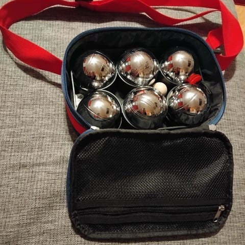 Petanque peli. Puulaatikossa. Ohjeet mukana.