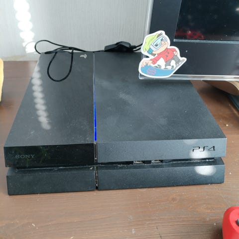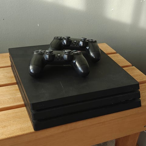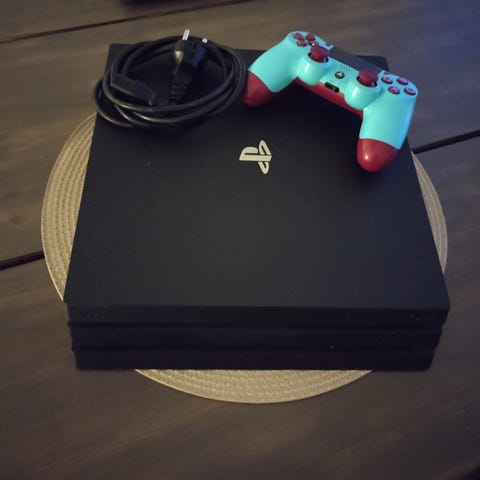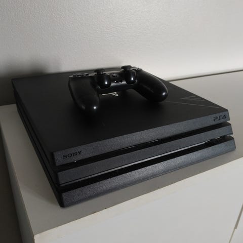 Myynnissä muutaman vuoden ikäinen Sony PlayStation 4 Pro 1Tb-pelikonsoli (valkoinen).
