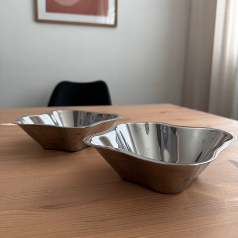 Iittala kulho. Aaltomainen reuna ja läpikuultava materiaali. Sopii esimerkiksi tarjoiluun tai sisustuselementiksi pöydälle tai hyllylle.