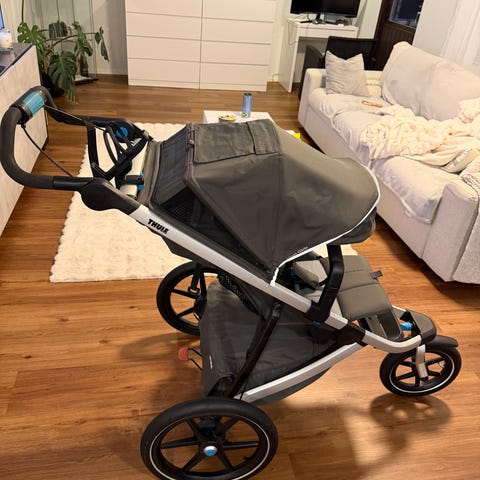 Thule urban glide 3 juoksurattaat, väri mid blue. Ostettu 2025. Perheessämme on espanjan vesikoira. Rattaat hyvässä kunnossa. Voi tulla tarkastamaan. Suuri kuomu suojaa lasta ja tavarakori rungon alla tarjoaa säilytystilaa. Soveltuu juoksuun ja lenkkeilyyn yhden lapsen kanssa.