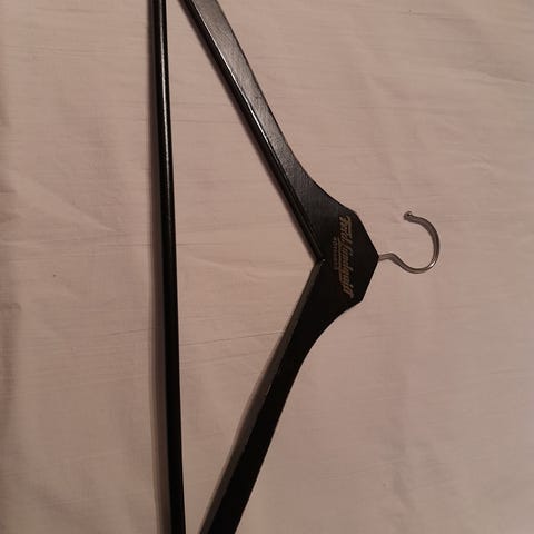 Kaunis leveämallinen tiikkinen henkari.