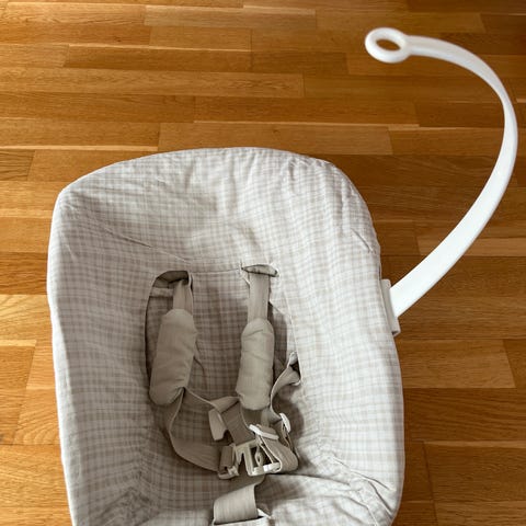 Myydään Stokke Tripp Trapp -syöttötuolin vauvan istuinosa. Pehmustettu vaalea istuin, jossa turvavaljaat vauvalle.