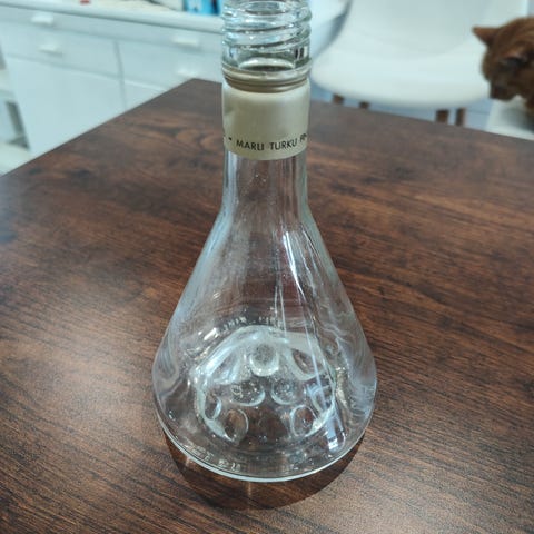 Karhulan lasipullo puukorissa