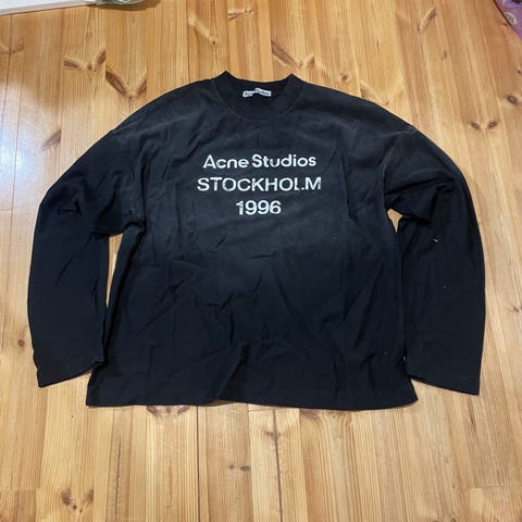Acne Studios t-paita. Koko S. Väri musta. Materiaali puuvilla. Edessä oleva acnen logo kulunut hieman pesussa, muuten paita moitteettomassa kunnossa. Nouto Helsingistä tai kuljetus onnistuu pks alueella.