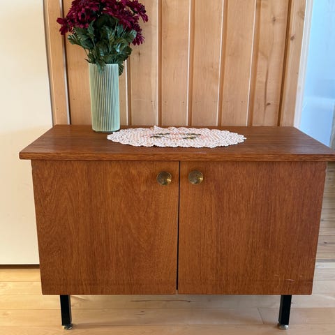 Myyntiin vanha 40-luvun tarjoiluvaunu, upeilla messinkikoristeilla. Talttapääruuvit. Ajantuomaa kulumaa, viilu irti pienestä kohdasta (saa liimattua). Sopii esimerkiksi hyvin vanhaan Artek sisutukseen!