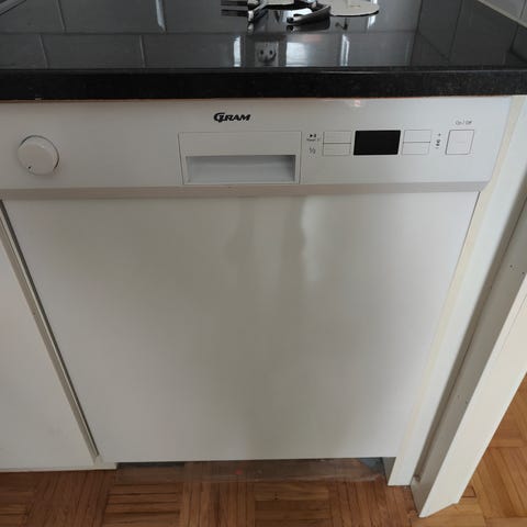 Gram tiskikone tason alle -malli. Etupaneeli on valkoinen ja ohjauspaneeli musta. 60 leveä ja korkeus säädettävissä jaloilla. Aterimille erillinen taso ylimpänä. Juuri otettu pois käytöstä, toimi hyvin. Myyn koska uudessa asunnossa tarvitsee olla kapeampi kone.