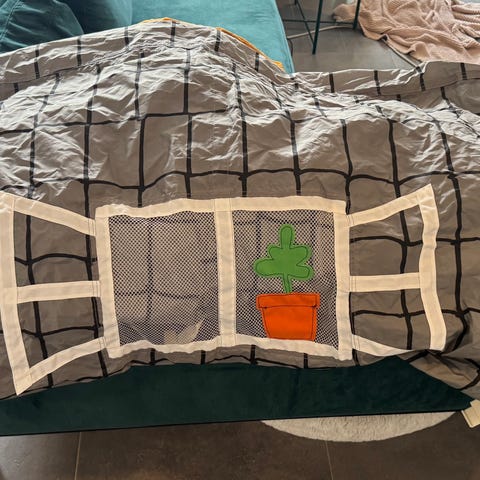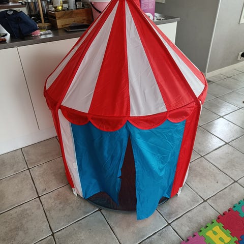Katossa yhdessä kohdassa pieni reikä, ks. kuvat. Muutoin hyväkuntoinen ja valmiina seuraavan leikkijän käyttöön