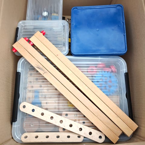 Kuvien mukainen rakennussarja. Ohjeita ei löydy, mutta menee hyvin lisäosavarastosta. Sähkömoottoria en testannut, ei siis takuuta toiminnasta.
