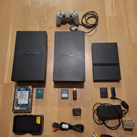 Myydään kaksi PlayStation 2 Slim -konsolipakettia erikseen tai yhdessä. Molemmat laitteet on testattu ja ne lukevat levyt moitteetta.