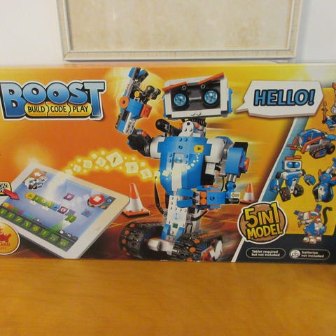 Lego Boost paketti, sisältää palikat, virtalähteen ja pelimaton. Rakennusohjeet ja ohjelmointi https://www.lego.com/fi-fi/themes/boost/apps sovelluksella. Palikoilta saa 4 eri robottia, joita saa ohjata ja liikuttaa sovelluksen ladattua pelimatolla esim. puhelimellä tai tabletilla. Kaikki palikat mukana, paitsi 2( eivät ole tärkeitä ja robotti liikkuu ilman niitäkin). Kunto hyvä. Alkuperäislaatikko ei enää mukana, mutta palikat siistit ja toimivat.sopii ogjelmoinnin alkujen oppimiseen.