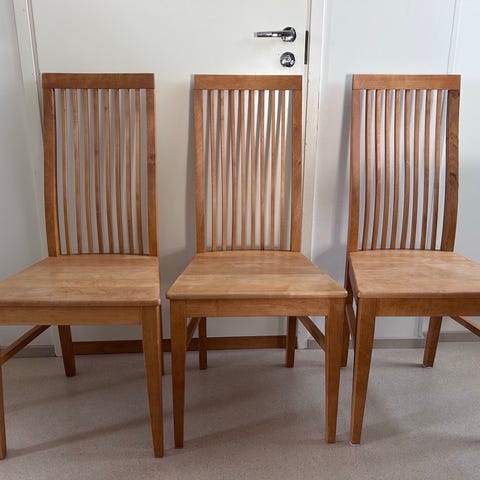 Nämä kaksi valkoista kaunista puutuolia myydään yhdessä hyvään kotiin ruokapöydän tuoleiksi tms. VAIN HAKU Pinninkadulta. Hinta on yhteishinta!
