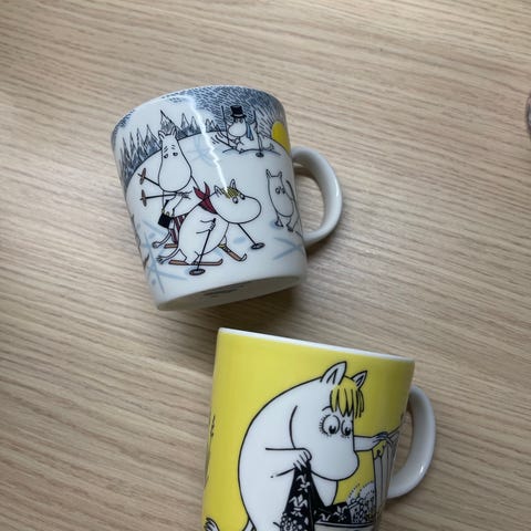 Arabia Muumi mukit- setti PAITSI KUVASSA NÄKYVÄ VIHREÄ NUUSKAMUIKKUS MUKI ON MENNYT JO. Keraamiset mukit, joissa on erilaisia Muumi-aiheisia kuvituksia. Sopivat kuumille ja kylmille juomille arki- ja kahviastiastoon. Mukit ovat yhteensopivia muiden Arabian Muumi-astioiden kanssa.