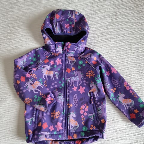 Hajusteettomasti pesty, yhden lapsen muiden ulkovaatteiden ohella käyttämä erittäin siisti softshelltakki koko 104. Takki on pesty vain kerran (ennen myyntiä). Tahroja tai tummentumia en löytänyt. Hupussa on nepparikiinnitys. Takista löytyy hyvät heijastavat yksityiskohdat edestä ja takaa.