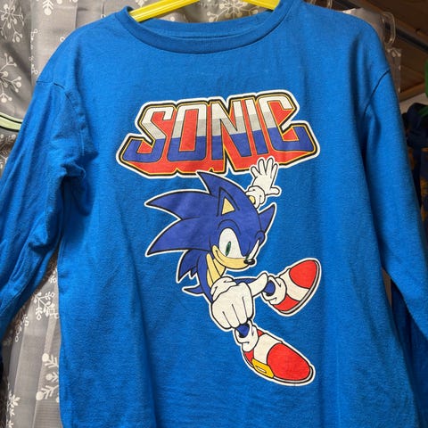 Sonic t-paita kokoa 122/128. Ehjä ja tahraton, väreissä kulumaa pesuista.