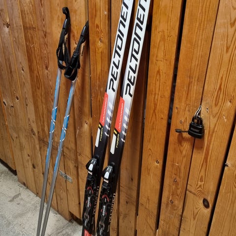 Tästä lämpövoidellut ja uutta vastaavat sukset seuraavalle hiihtäjälle. Suksilla on hiihdetty vain ladulla joten pohjat ovat huippukunnossa. Nnn siteet.