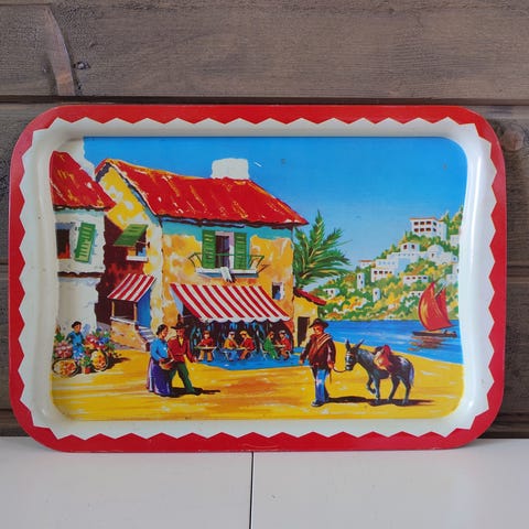 Vihreä vintage metallinen tarjotin