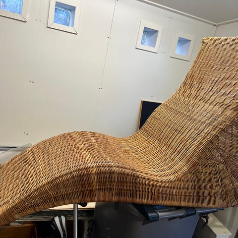 Loistokuntoinen Ikean musta korkeaselkäinen rottinki tuoli.