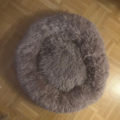 Zoo pienen koiran/kissan pyöreä peti, pinta samettinen, paksu tyyny sisällä, hyvä eriste lattialta (n 10cm korkea).