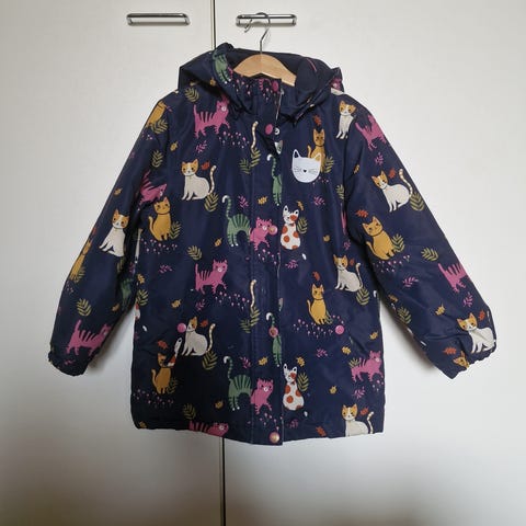Lindex Kids lasten takki tytöille, koko 128. Violetti, vettä hylkivä kuoritakki, jossa pehmeä toppavuori. Takissa on irrotettava tai kiinteä huppu (kuvien mukaan), etutaskut sekä edessä vetoketju ja tuulilista neppareilla. Hihoissa ja selässä on heijastinyksityiskohtia. Edessä yksisarvisaiheiset kuviot. Soveltuu arkeen ja ulkoleikkeihin viileään säähän.