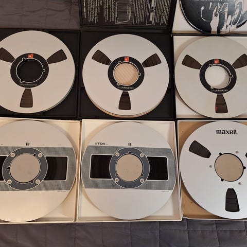 Oheisten kuvien neljä huippulaadukasta 7" kelanauhaa uusiin nauhoituksiin. Nauhoihin on kertaalleen nauhoitettu klassista musiikkia. Nauhat ja kotelot ovat erittäin siistejä. Nauhat on säilytetty auringonvalolta suojassa koteloissaan ja niitä on kuunneltu minimaalisesti.