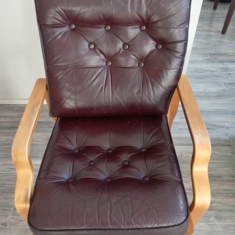 Mukava harmaa nojatuoli mekanismilla. Reclining