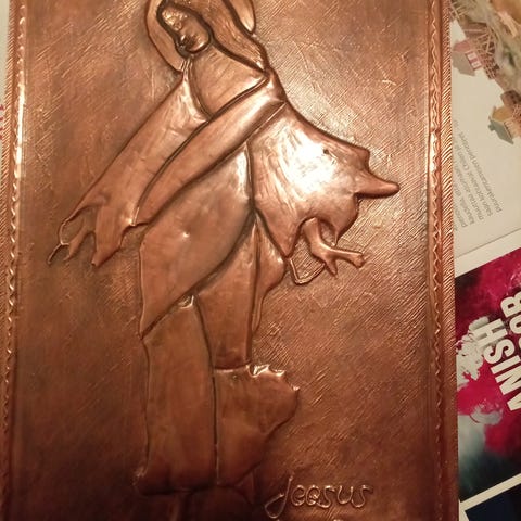Ikonitaulu, jossa aiheena marttyyrit Boris ja Gleb ratsuineen. Käsinmaalattu noin 1990 lopulla. Leveys 20cm korkeus 25 cm syvyys 2 cm.