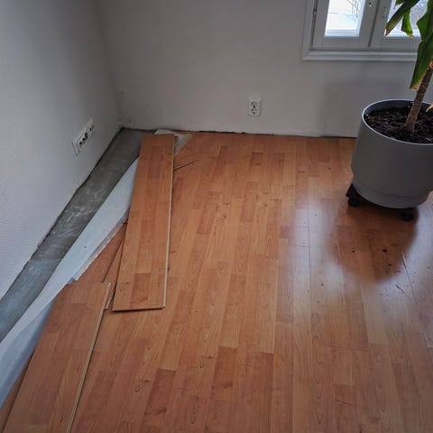 Annetaan ruskeaa laminaattia kokonaisia paloja 44kpl/ 7,94 neliöö + n. 3 neliöö leikattuja aloitus ja lopetuspäitä. Haku Keljonkankaalta.